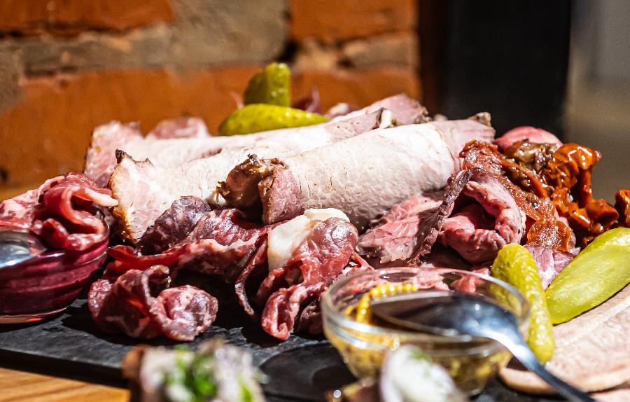 Идеально дополняет мясную тарелку с ростбифом и копчёным языком. Рекомендуем подавать с классическими акцентами: вялеными томатами, маринованными огурчиками, острой горчицей и хреном — для идеального гастрономического контраста.